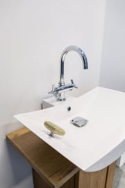 -schoon en netjes, de zeep heeft een vast plek en er zijn geen zeepschaaltjes nodig