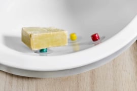 Vooral handig als je geen ruimte hebt voor een zeepschaaltje.