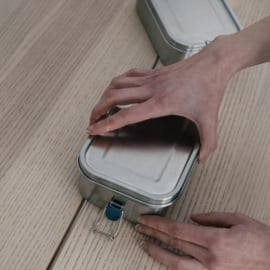 Deze lunchbox van roestvrij staal, met uitneembaar binnendeel van siliconen. Dit maakt de lunchbox uniek en geschikt voor warm en koud. Het siliconen binnendeel kan in de oven en magnetron om je eten op te warmen. De roestvrijstalen bak (niet het deksel) kan in de oven, niet in de magnetron.
