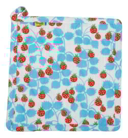 Pannenlap biokatoen/linnen - Wild Strawberries Blue - Duns SwedenPannenlap van biokatoen en linnen. Mooie kwaliteit en mooie print van Duns Sweden