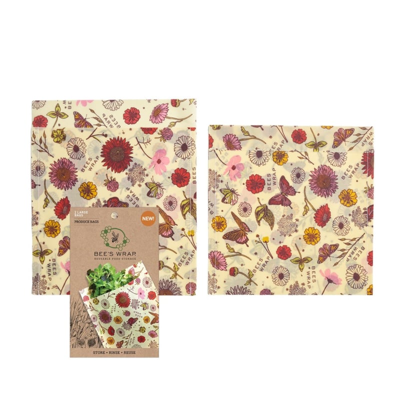 Bees wrap produce bags - set van 2 - VEGANTwee produce bags van plantaardige wasdoeken. Ideaal voor het meenemen van snacks maar ook om je verpakkingsvrije boodschappen in te doen. Voor noten, kaas, groentes, broodjes, snacks.