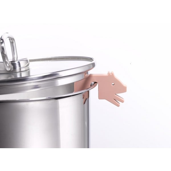 deze dekselhouder varken voorkomt dat je pan overkookt doordat het deksel open blijft. De waterdamp kan zodoende ontsnappen. Simpel, effectief.