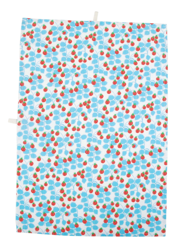 Theedoek van biokatoen en linnen - Wild Strawberries Blue - DunsFraaie theedoek van biokatoen en linnen met prachtige Wild Strawberries print. Duns Sweden