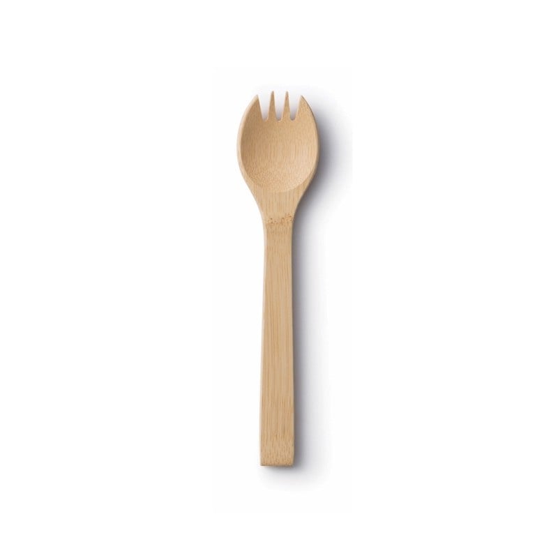bamboe sporkBamboe spork (lepel en vork ineen). Handig voor onderweg, lichtgewicht en praktisch. Voorkom afval bij takeaway of lunch op je werk.