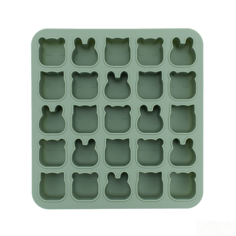 siliconen vormen mini Freeze & Bake groen - We Might be TinyVormpjes van siliconen voor invriezen en bakken. Bv. ijsblokjes, ijsjes, fruithapjes, gezonde tussendoortjes. Met doorzichtig deksel (ook van siliconen).