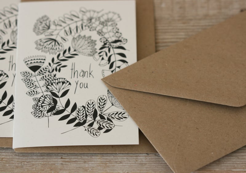 Wenskaart Thank you - bloemen - LilarubykingWenskaart Thank you - bloemen - van gerecycled karton met envelop van Lilarubyking.