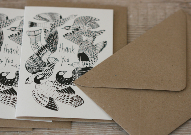 Wenskaart Thank you - vogels - LilarubykingWenskaart Thank you - vogels - van gerecycled karton met envelop van Lilarubyking.