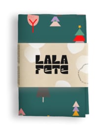 Herbruikbare gift wrap - 50 x 50 cm LalaFete KERSTHerbruikbare gift wrap van textiel met KERST dessin. Feestelijk, duurzaam alternatief voor kadopapier, dat een berg afval voorkomt. Een gift wrap kun je eindeloos hergebruiken. Je geeft het cadeau in de gift wrap en neemt de doek…